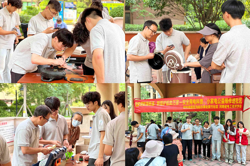 活动现场,社区凉亭化身为“电力服务驿站”。郑州轻工业大学“阳光电气”专业志愿服务队的党员技术骨干们分工协作,专注处理着居民送来的电风扇、电饭煲、电水壶等小家电。志愿者们一边维修,一边耐心讲解用电安全科普知识。贴心的服务得到了居民们的一致好评。
