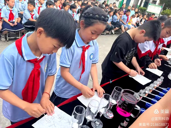 在宜阳县韩城镇韩城实验小学科普活动中,由专家讲解生活中常见的化学反应,生动的讲解仿佛是一把神奇的钥匙,打开了同学们通往化学世界的大门。