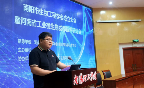 河南省生物工程学会副秘书长侯佩博士代表河南省生物工程学会对南阳市生物工程学会的成立表示热烈祝贺。同时表示,河南省生物工程学会将全力支持南阳市生物工程学会的各项工作和发展!愿与南阳市生物工程学会携手并进,充分发挥河南省生物工程学会的优势资源,为南阳市生物工程学会开展学术交流、人才培养、项目合作等方面提供全力支持;共同搭建更广阔的学术技术交流平台,服务好广大会员和科技工作者,为助力南阳现代化省域副中心城市建设、谱写新时代中原更加出彩的绚丽篇章贡献共同的智慧和力量。