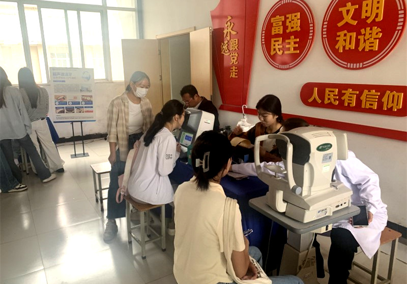 爱尔眼科医院聚焦学生视力健康问题,现场开展清洗眼镜、视力检测等服务,医护人员还针对学生常见的近视、散光等眼部问题进行答疑解惑,普及科学用眼、护眼知识,帮助学生提升眼部健康保护意识。
