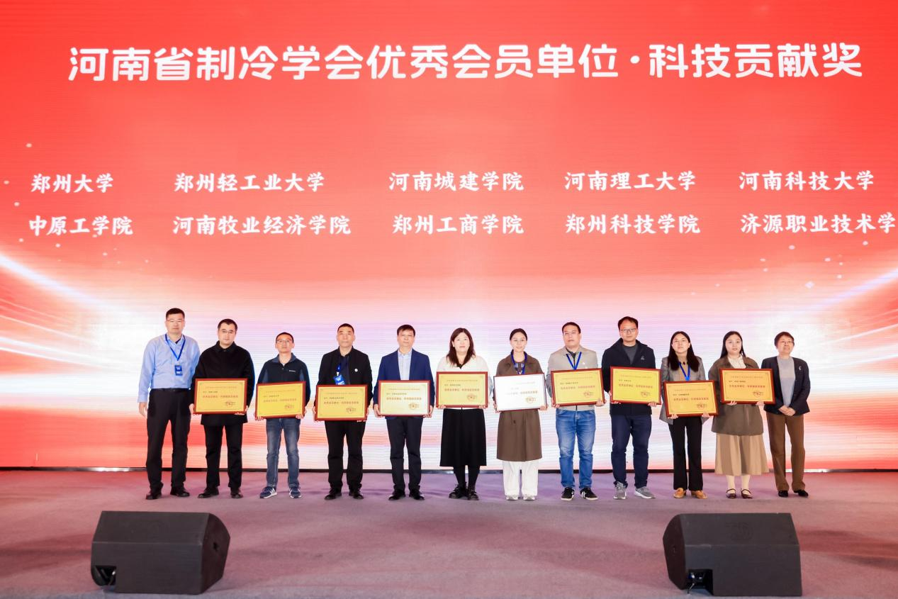 “优秀会员单位・科技贡献奖”:郑州大学、郑州轻工业大学、河南城建学院等10所高校获此荣誉。它们立足科研阵地,搭建产学研桥梁,在制冷技术创新与人才培养领域成果丰硕,是行业发展的“赋能者”。全国商业冷藏科技情报站站长尹从绪、河南省制冷学会副理事长李红霞为高校代表颁奖。