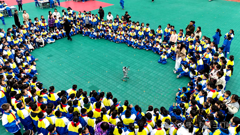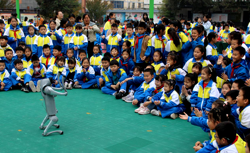 活动的高潮,当属机器狗的精彩表演。当憨态可掬的机器狗迈着整齐的步伐走上操场时,孩子们瞬间沸腾起来,纷纷围拢过来。在科普讲解员的操控下,机器狗先后完成了直立行走、跳跃、转圈等一系列高难度动作,甚至还能跟着音乐节拍 “跳舞”。
