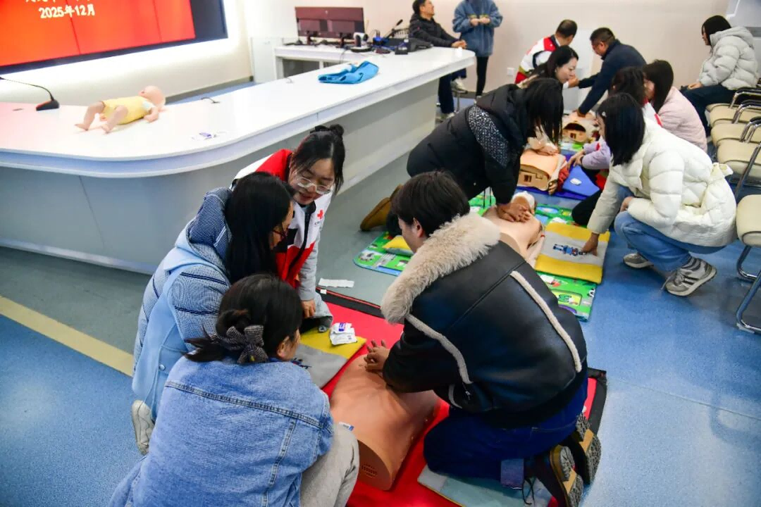 随后,冯海河结合实际可能遇到的突发场景,开展沉浸式实战教学,现场示范心肺复苏、气道异物梗阻急救术的规范操作流程,从动作力度、操作节奏到注意事项逐一讲解。同时针对现实中遇到较多的鼻出血、癫痫、中暑、溺水等突发情况,额外补充了简易创伤处理等实用技巧。融媒体中心干部职工主动上前、积极实操,认真模仿每一个动作细节,反复练习要领,现场学习氛围浓厚。
