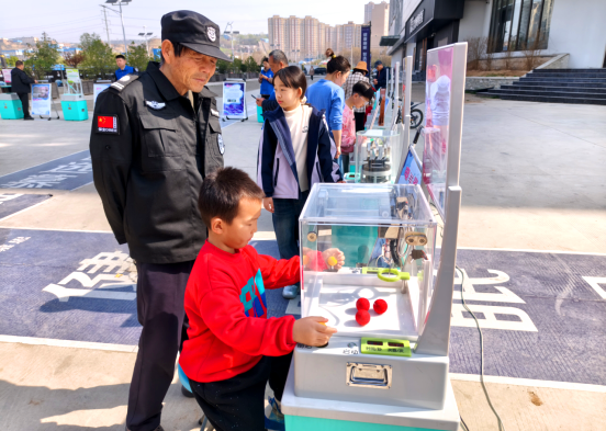 活动现场,科普大篷车成为集市上一道亮眼的风景。车身搭载的互动科普展具循环展示着趣味科学原理,地面上整齐排列的科普互动展品吸引了不少赶集群众驻足围观。志愿者们耐心引导群众体验“磁悬浮环”“短期记忆测试”等科普装置,孩子们好奇地动手操作,老人们认真聆听科学原理讲解,在轻松愉悦的氛围中感受科技的奇妙。