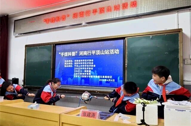 用废旧水管改装的“加特林”接连喷射出乒乓球,大嘴巴纸飞机在空中久久不落……4月8日,“手搓科普”河南行平顶山站活动走进卫东区五条路小学和平顶山市第三十二中学,为500余名师生带来“化繁为简”“变废为宝”的“手搓”科普实验秀。