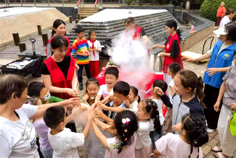 6月20日,郑州科技馆“雨润春苗”科普志愿服务队走进煤仓街社区鑫苑都市公寓,开展特色科普活动,为社区居民送上科普知识大餐。