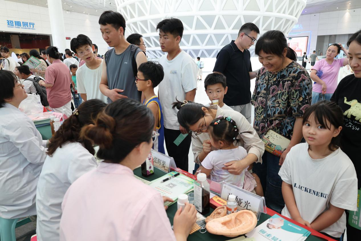 专家筛查义诊与系列科普讲座现场热闹非凡。六家权威医院专家团队坐诊一层中庭,为广大家庭提供面对面的健康咨询与义诊服务,并设置了丰富多样的科普互动环节。从“五小”义诊服务台,到有趣的互动游戏,再到精彩的健康科普讲座,孩子们在这里不仅得到了全面的身体检查,更在欢乐中收获了许多健康科普知识。