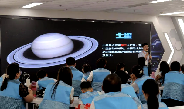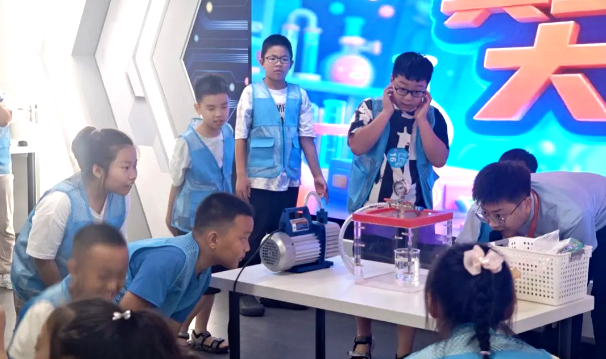 宇宙初探:在宇宙天文展厅的深度巡讲中,黑洞、星系等天文奇观不再是书本上的图片,科技辅导员生动的解说带领营员们开启了一场星际穿越之旅。神奇的“真空环境模拟”小实验,更让营员们共同体验了宇宙环境的奇妙。