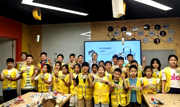 能量转换:营员们动手制作“弹力赛车”,观察弹性势能如何转化为动能驱动小车前进。特别设置的“盐水电池”实验,通过简单的化学反应,让孩子们直观、有趣地理解了化学能转化为电能的过程,激发了无限好奇。