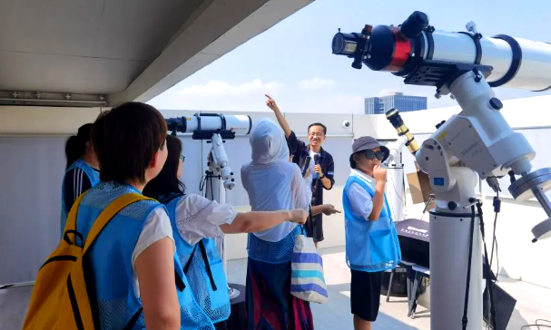 天文台“追日”:营员们分批登上天文台,在专业老师的讲解下,对太阳有了初步的了解,明白了不同天文观测仪器的作用,并实时观看了太阳直播,感受了恒星的魅力。