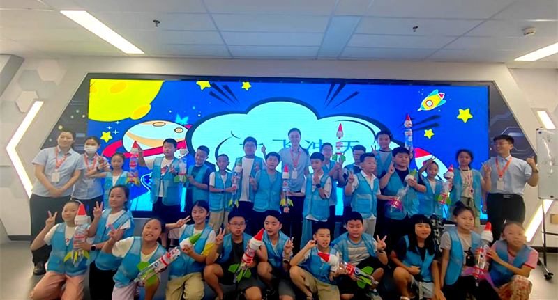 火箭工坊:亲手设计、制作水火箭是营员们最期待的环节。从学习火箭原理,到动手组装,再到激动人心的户外“水火箭测高竞赛”,一枚枚承载着梦想的“小火箭”冲向蓝天,欢呼声此起彼伏,孩子们在实践中深刻理解了反冲力的奥秘。