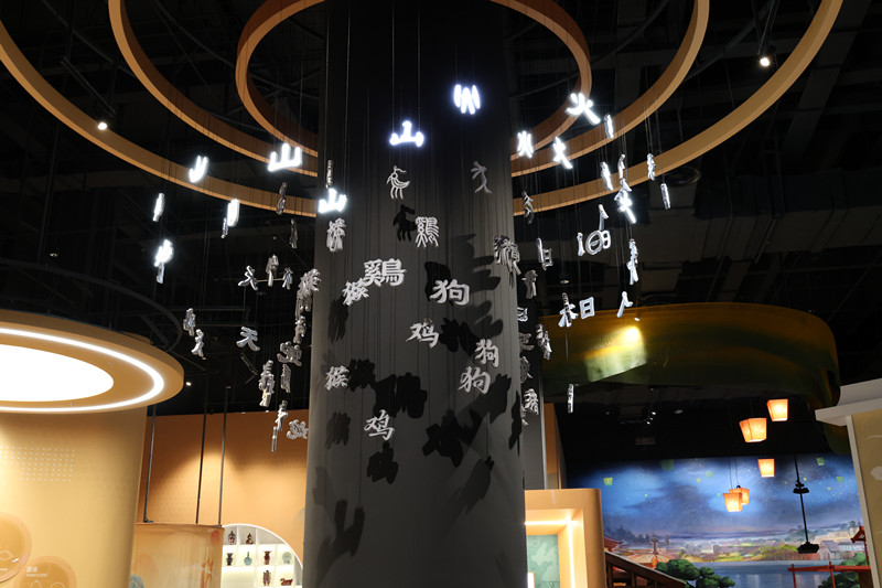 在“智慧人类”展厅,科技辅导员刘美麟介绍,展厅以“我们从哪里来”这一主题展开,展示内容结合黄河文明与河南特色,围绕“智慧”诠释人类从生命起源开始,逐步适应环境、探索自然、改造自然再到与自然和谐共生的发展历程。展厅入口设置了甲骨文演化装置,屏幕上可自由选择十二生肖或图形,点击后,上方将依次点亮对应文字的演变过程,从甲骨文、金文,到楷书、简体字,清晰展现出汉字的历史传承。