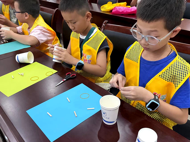 移步趣味科普互动课堂,科普辅导员为孩子们量身定制了妙趣横生的科普活动。在轻松愉快的氛围中,孩子们动手参与实验,开动脑筋思考,在玩中学、学中乐。辅导员们特别关注孩子们的参与度和体验感,鼓励每一位孩子大胆表达、积极互动,让科学的种子在欢声笑语中悄然播撒。