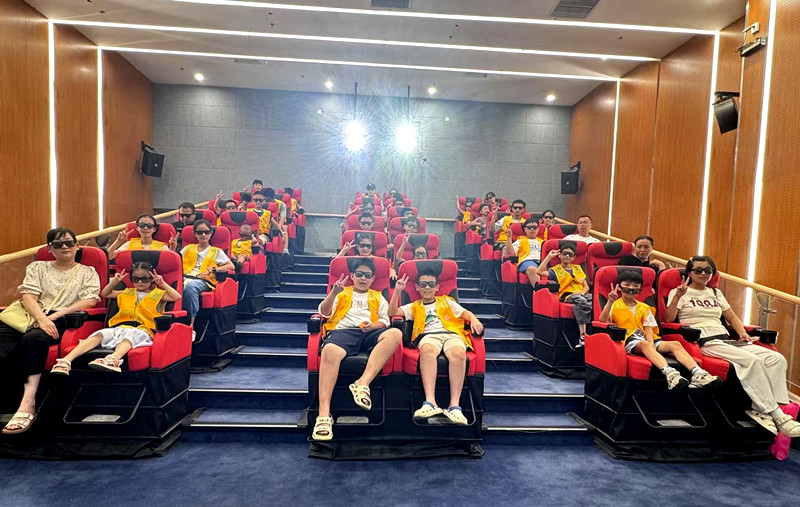 在科技馆二楼的4D动感影院,孩子们观看了科普影片《史前历险》。逼真的立体画面配合动感座椅和环绕音效,瞬间将他们带入史前世界,感受大自然的壮阔与生命的演化。影院内不时响起孩子们的惊叹声和欢笑声,这场身临其境的感官盛宴,极大地拓宽了他们的视野和想象力。