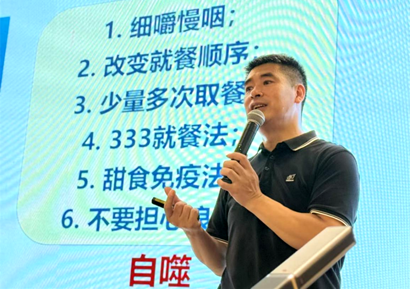 在讲座中,冯会长用一系列数据和实例告诉听众,由于生活方式和饮食习惯的影响,我国民众的健康当前正面临不小的威胁。蛋白质、维生素和多种微量元素的缺乏会导致多种疾病和潜在健康隐患,高血压、糖尿病以及过度肥胖这些日常生活中常见的病例,也与过多食用外卖、膳食纤维摄入过少和作息不规律离不开关系。在身体出现病症时,除了求助医疗手段,我们也可以从日常饮食做起,选对食物吃对量、吃饱不吃撑,注重饮食与运动平衡养成良好的生活习惯,学会科学饮食改善健康状况。