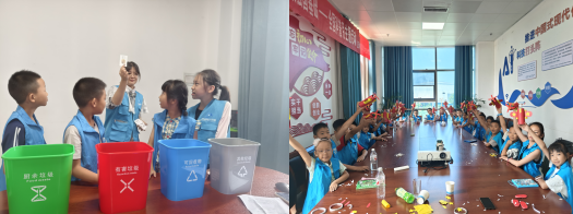 收官日通过知识问答、小游戏回顾前期知识,孩子们分组展示实验报告、手工作品、环保小妙招等学习成果。结营仪式上,共同制定“生态文明行动公约”,带着满满的环保理念与行动决心,正式成为守护地球的小小行动派。