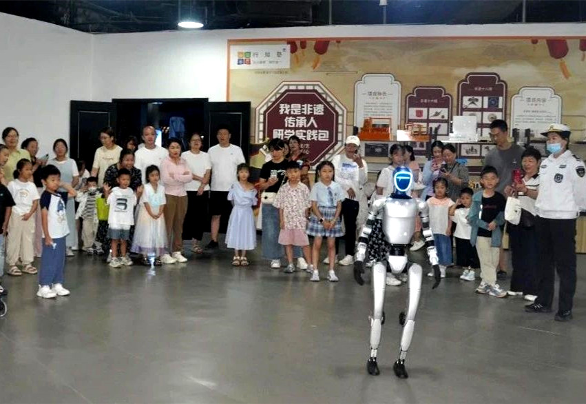 现场还有智能机器人与小朋友们共跳儿童保健操、八段锦养生操。情景剧《蒜治下痢》等表演展现了中医导引养生精髓,演绎了中医智慧。药学部药师带领孩子们化身“小药师”体验山楂健脾消食丸制作,感受中医药文化魅力。