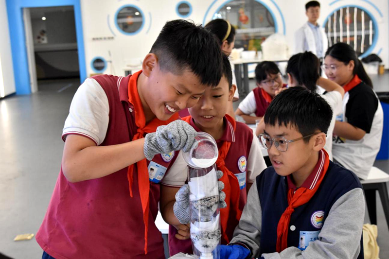 与此同时,综合实践活动与科普大篷车同步联动。“智取净水”和“象湖植物密码”任务引导同学们从课堂走向自然,通过亲手组装净水装置、制作植物标本,体验科学知识的实际应用;科普大篷车如“移动课堂”驶入濮阳范县,以互动展品和趣味实验,让学生在触摸与尝试中感受科学的魅力。