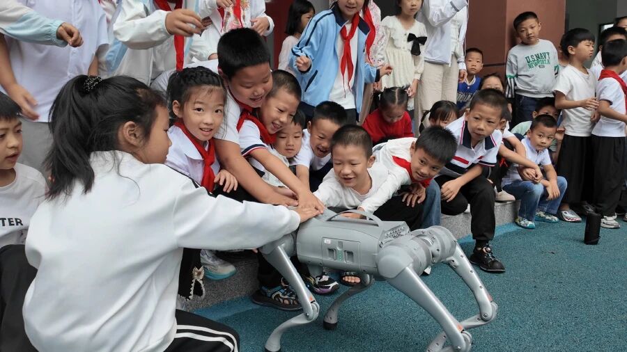 走进新县城关第一小学,科技魅力扑面而来。活动现场设置了多个特色环节,让孩子们沉浸式感受科学的乐趣。在机甲大师体验区,孩子们操控机甲完成对战任务,在一次次调试与挑战中感受人工智能的神奇;红色电影放映区则循环播放大别山革命历史影片片段,让孩子们在科技体验中同步感悟红色文化传承。