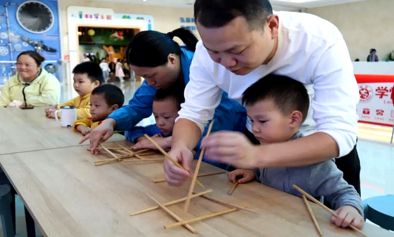 除了核心体验项目,活动现场还设置了建筑科学知识展示,科普辅导老师用图文结合的形式讲解榫卯结构的历史演变、现代建筑中的力学应用案例,帮助参与者将实践操作与理论知识串联起来。许多家长带着孩子共同参与,在协作搭建中交流想法,一起发现生活中隐藏的建筑科学——从家里的桌椅榫卯拼接,到小区里的拱桥设计,都成为了鲜活的“科学教材”。
