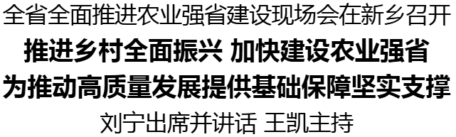 9月24日,全省全面推进农业强省建设现场会在新乡市召开,省委书记刘宁出席并讲话,强调要深入贯彻习近平总书记关于加快推进农业农村现代化的重要论述和在河南考察时重要讲话精神,动员全省上下扎扎实实推进乡村全面振兴,加快建设农业强省,为奋力谱写中原大地推进中国式现代化新篇章提供坚实支撑。省长王凯主持。