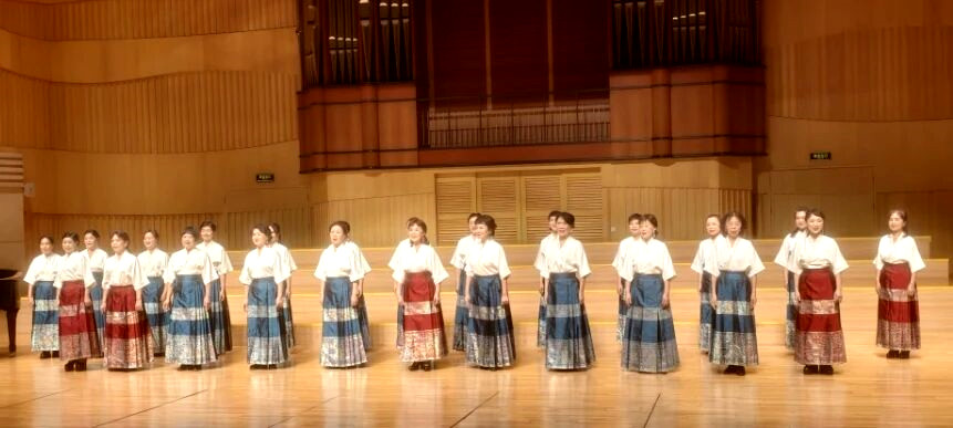 音乐会以“经典传承”为核心,精心编排十组二十首作品。金水区文化馆月光合唱团率先登场,献上十六首风格各异的合唱曲目:《十六字令三首》《满江红・写怀》唱出家国豪情,《只有河南》《打酸枣》满含乡土意趣;男声合唱《秦风・无衣》铿锵有力,女声合唱《敕勒川》柔美婉转,《梦绕大别山》《TAMATU》等作品亦凭借独特艺术魅力收获满堂喝彩。团员们以声传情,和声如天籁般时而恢弘壮阔、时而清澈细腻,为观众打造沉浸式听觉体验。