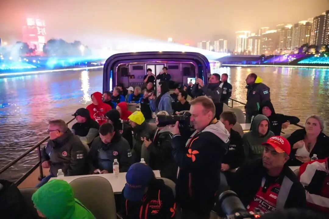 在2025年世界F1H2O摩托艇中国郑州大奖赛即将启幕之际,10月8日晚,来自世界各地的F1H2O摩托艇超级赛手与赛事嘉宾来到如意湖畔,登船体验如意龙湖·船说郑州城市水上夜游,在光影交织、历史文化相伴中,度过了一个难忘的夜晚。