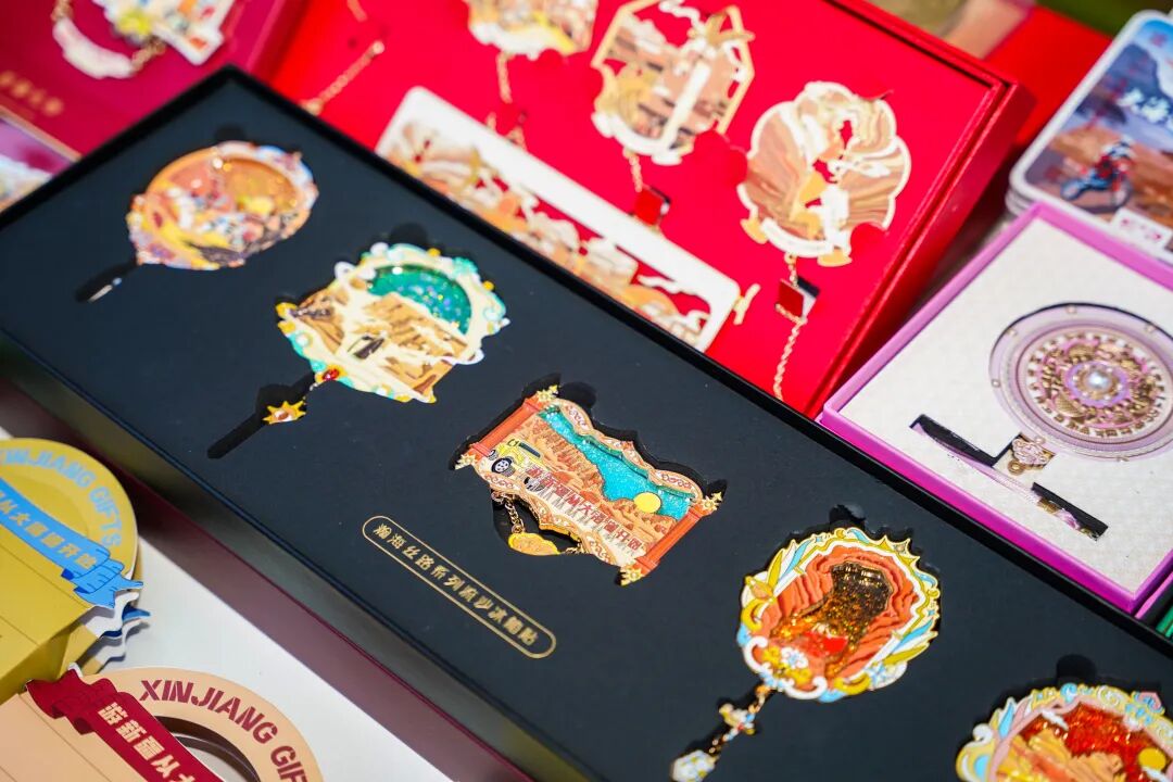 非遗文创集市还设置了互动环节,幸运观众通过抽奖获得了具有哈密特色的文创冰箱贴等纪念品,人们脸上洋溢着开心的笑容,纷纷拿出手机拍照留念。