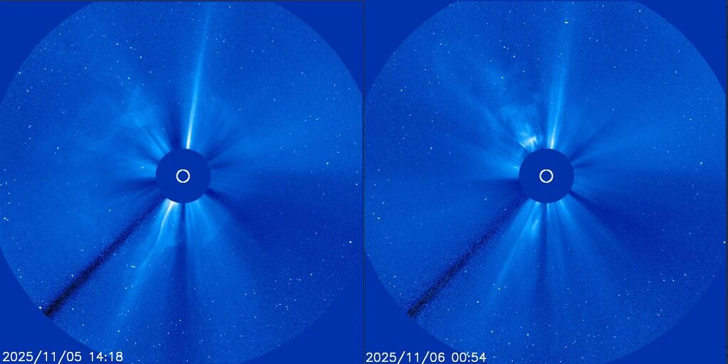 北京时间11月5日19时19分以及11月6日6时7分,太阳再次耀斑两连暴,最大强度分别为M7.4和M8.6级,并伴随较为明显的日冕物质抛射(CME)。