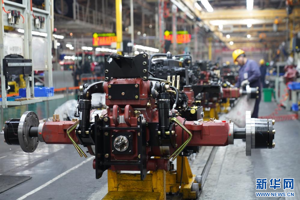 11月4日,工人在位于河南洛阳的国机集团中国一拖大轮拖总装线作业。