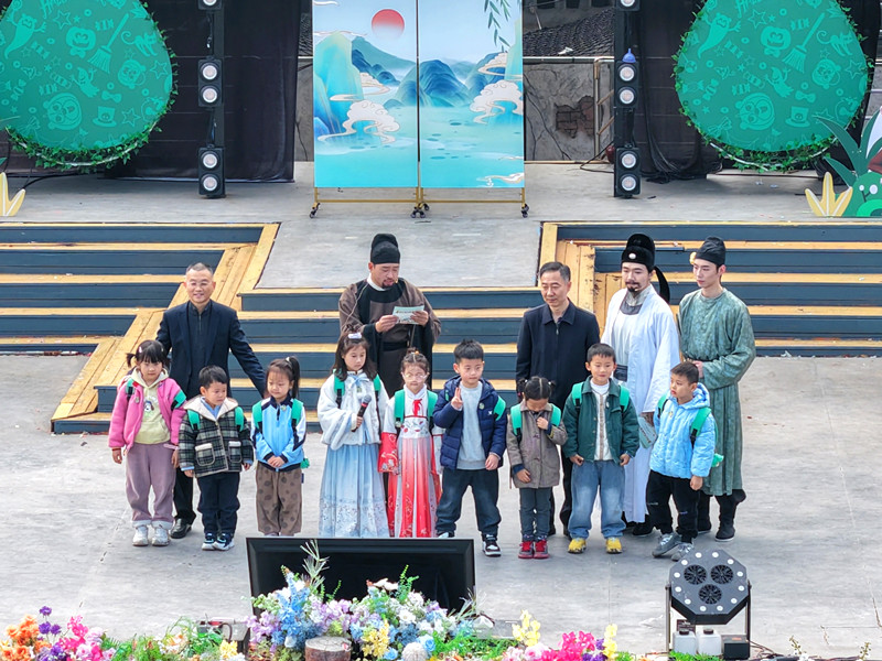 文化的生命力在于传承。在“文脉薪传·少年接力”环节,诗人与可爱的卡通NPC共同带领孩子们诵读经典。郑州市委网信办、中牟县委宣传部负责同志为参与活动的小朋友赠送象征文化传承的定制徽章。这一温馨仪式,不仅是传统文化的接力,也寄托着对新时代少年延续与发扬诗词精神的期望。