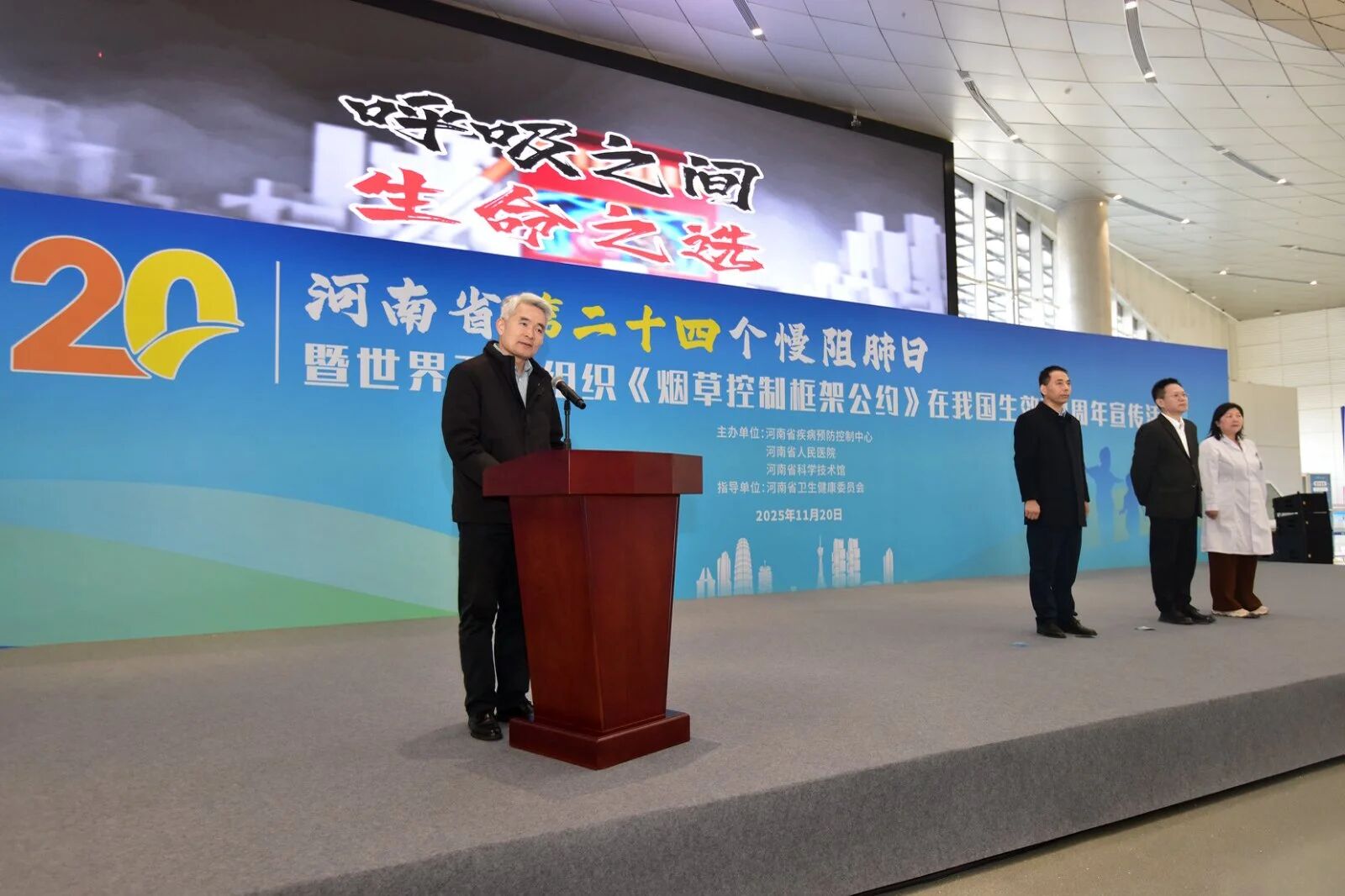 活动现场,河南省疾病预防控制中心副主任韩志伟在致辞中指出,慢阻肺作为严重威胁群众健康的慢性呼吸系统疾病,其发病与吸烟、职业粉尘暴露、空气污染等因素密切相关,其中吸烟是首要危险因素。