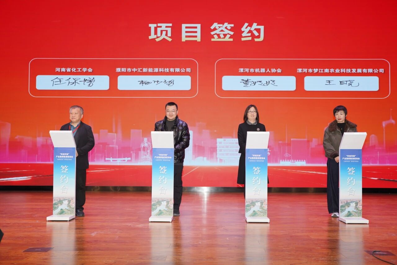 企业路演项目现场推介本次路演现场会以“汇聚科创资源 赋能高质量发展”为主题。会上,省化工学会、市机器人协会与企业代表签订成果转化合作协议,招商银行作科技金融政策宣讲,“科创中国”和“科创河南”运营负责人作平台介绍,中原食品实验室、河南师范大学、河南农业大学等16家来自全省不同行业的高校、学会、科研院所及企业代表作路演推介。