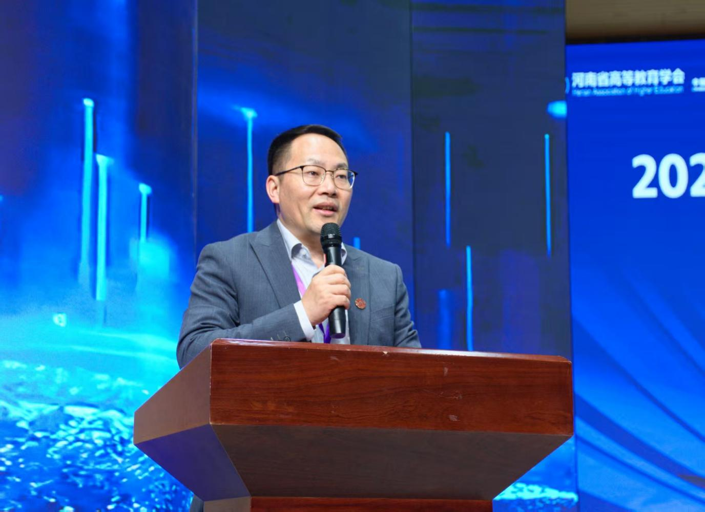 河南省高等教育学会副秘书长张宝柱为大赛致辞。他首先对承办本次大赛的郑州工商学院、河南大学表示感谢,并向与会成员介绍了河南省高等教育学会的发展历程和服务宗旨。针对大赛,他提出四点希望:以赛促改,检验知识、转化能力;以赛促建,搭建闭环平台、沉淀成果;以赛促教,创新教学、提升质量;以赛促学,端正态度、展现风采。希望通过大赛,推动学科专业一体化发展,推动产教深度融合,为地方经济社会发展贡献力量。