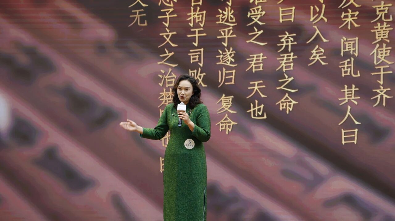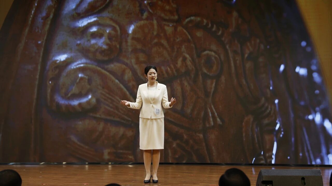 终选会活动现场,讲解员黄月明以北齐文物“黄釉扁壶”为载体,以古诗为引,分别从文物造型、工艺特色、乐舞形式等方面进行细致解读,带领观众一同感受北朝时期民族融合、胡汉交流的时代风貌,展现出中华文化的自信与包容。