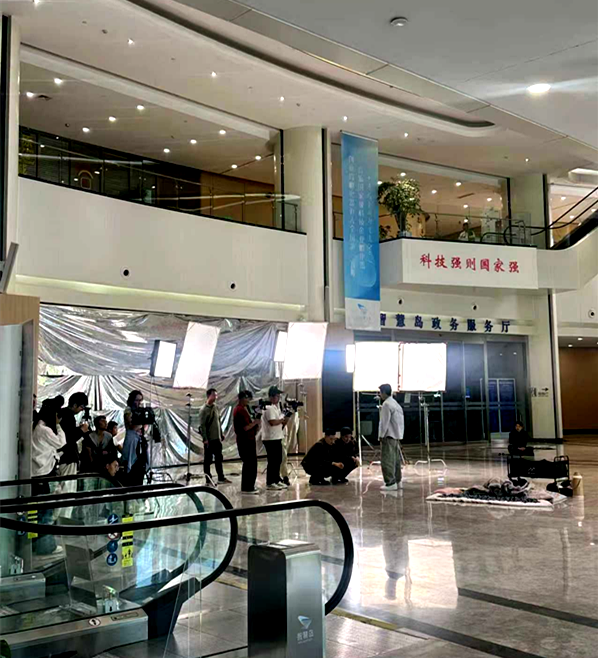 微短剧《飘洋过海来看你》剧组在智慧岛大厦内拍摄
