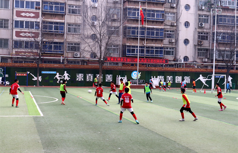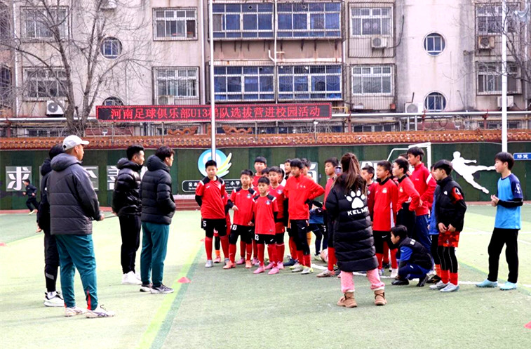 1月3日,河南足球俱乐部U13梯队选拔营走进郑州市金水区南阳路第二小学。包括农业路小学在内多所兄弟学校的小球员参与选拔,宋琦、陆峰、尹鸿博和杨阔等河南足球名宿及资深教练员也来到现场参加选拔活动。