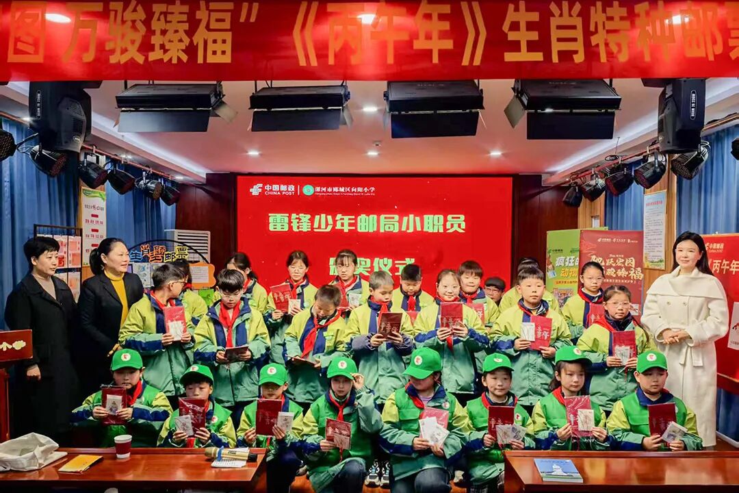 漯河市邮政分公司在向阳小学雷锋少年邮局举办《丙午年》特种邮票首发行仪式,100多名师生和集邮爱好者参与此次活动。