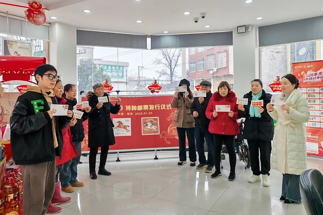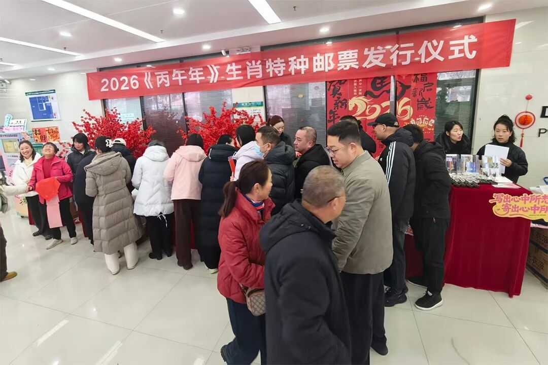 1月5日,中国邮政发行《丙午年》特种邮票一套2枚。当天,河南多地举办了形式多样的邮票发行活动。通过融合公益惠民、集邮品鉴、文化互动等场景,为广大市民与集邮爱好者搭建了近距离感受生肖邮票艺术魅力的平台,用邮政独有的传播方式,让生肖文化在中原大地上焕发新时代光彩。