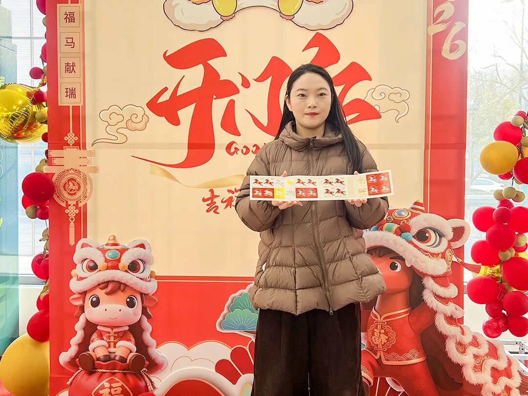 活动现场,4位正值本命年的“值年使者”——陈付圈(60岁)、吕建义(48岁)、蒋伟萍(36岁)、丁帅楠(24岁),共同为《中邮印·生肖马》主题邮品加盖彩色叠印戳。该环节不仅承载着对传统生肖文化的敬重与延续,也凝聚了人们对马年安康、万事顺遂的真诚祈愿。