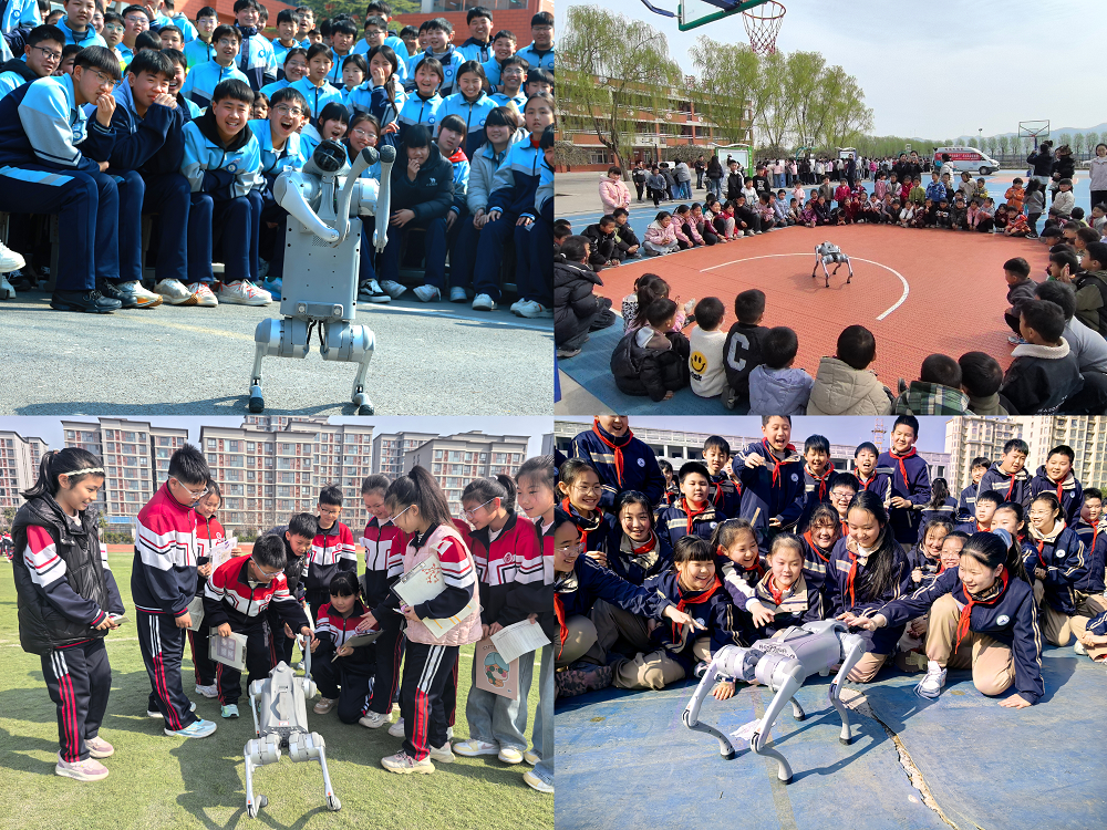 作为活动的“人气王”,智能机器狗每一次的登场都能瞬间点燃校园气氛。在技术人员操控下,机器狗灵活完成直立作揖、翻滚跳跃、高速奔跑等高难度动作,与孩子们亲切互动。“它怎么听得懂指令?”“传感器装在哪里?”面对一双双好奇的眼睛,科技志愿者现场讲解仿生学与人工智能基础知识,在乡村孩子心中播下探索智能科技的种子。