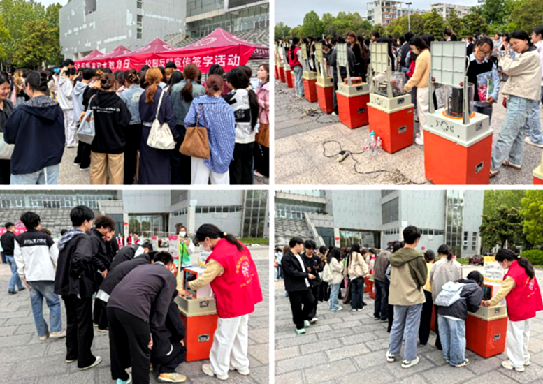 活动现场,许昌市科协通过摆放反邪教宣传展板,发放宣传页和讲解反邪教典型案例,向师生们普及科学知识,揭露邪教危害。随后,反邪教签名环节吸引了广大师生踊跃参与,大家纷纷在横幅上签下自己的名字,以实际行动树牢国家安全意识,承诺崇尚科学,反对邪教,共建平安校园。