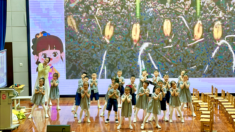 教学展示环节紧紧围绕识粮、惜粮、护粮、安粮、兴粮这条主线层层递进,学前学段带来的《初识一穗麦》课程成为全场亮点。课程贴合幼儿认知特点,以生活化、游戏化学习为核心特色,教师通过趣味情景剧演绎小麦从播种、生根、抽穗到成熟、收获的完整生长周期,搭配麦穗实物观察、趣味肢体表演、农耕歌曲传唱等形式,让幼儿直观感受粮食生长的不易,深入了解河南作为产粮大省在保障国家粮食安全中的重要地位,在孩子们幼小心灵中早早播下珍惜粮食、热爱家乡、守护粮仓的种子。