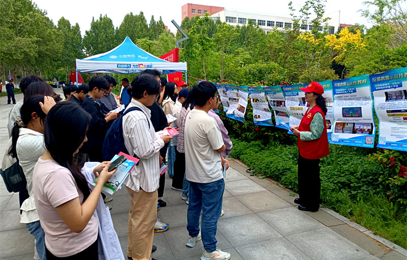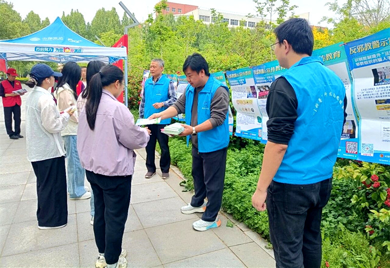 在反邪教知识展板、挂图宣传区,图文并茂的展板、图片详细揭露了邪教的骗人伎俩和危害,结合高校学生的认知特点,市科协和反邪教协会的的志愿者在现场发放了《关爱生命、防邪防骗、健康生活》书籍、科学辟谣科普读本和科普宣传手提袋等500余套,并耐心解答同学们的疑问,深入浅出地讲解了邪教的本质特征、严重危害以及常见的伪装手段,引导大家牢记“不听、不信、不传”的防范准则。