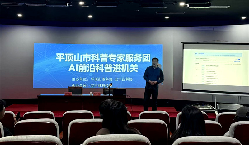 为普及人工智能知识,推广智能办公应用技能,切实提升广大干部职工日常办公效率,4月23日上午,宝丰县“AI如何提升日常办公效率”专题科普讲座在县科技馆三楼科普影院成功举办。本次讲座特邀河南省首席科普专家杨雨工作室成员、平顶山学院软件学院人工智能教研室主任巩跃洪主讲,70余名科普爱好者、机关企事业单位职工聆听学习。