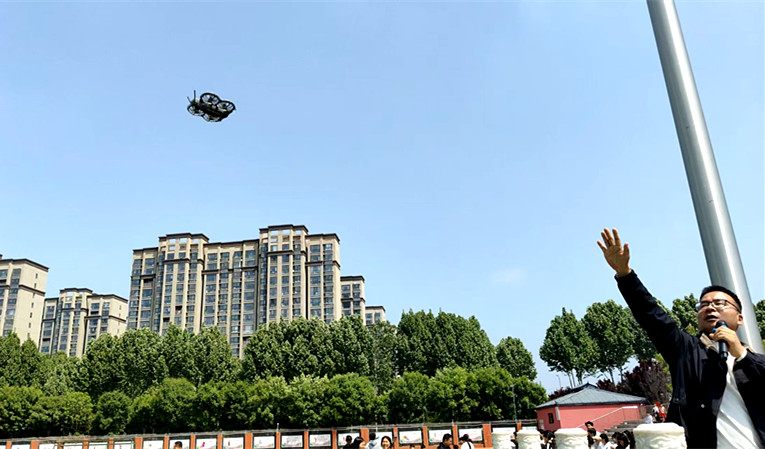 使用带防护网的球形无人机足球开展展演,无人机升空、灵活飞行,展现无人机灵活操控性能,以趣味科技形式,调动学生参与科普活动的积极性。