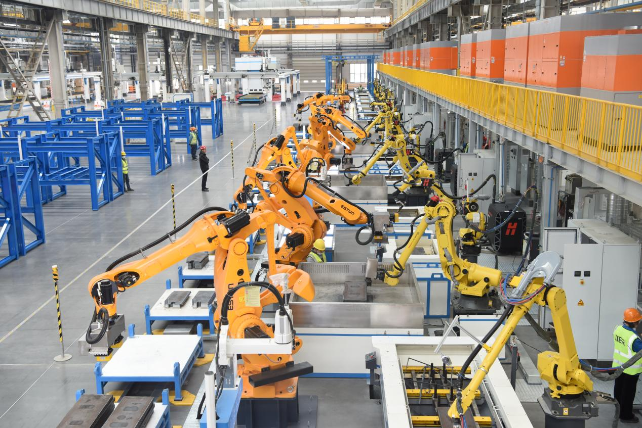 在郑煤机智慧园区生产车间,一个20多吨的液压支架主体结构件通过大型变位机的应用,直接实现结构件180度自由翻转和无死角焊接。曾经需要工人在工件上趴着焊接才能完成的任务,现在被智能机械臂“轻松拿下”。