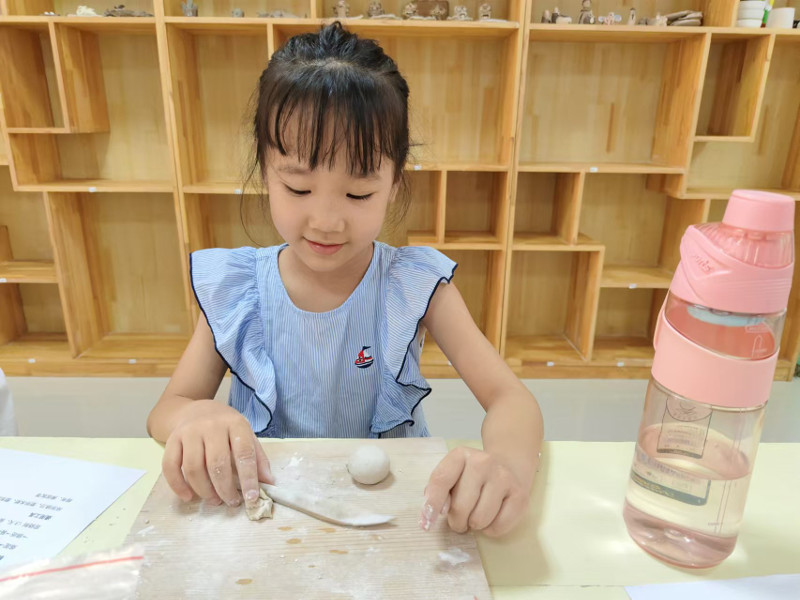 小营员动手制作陶艺。