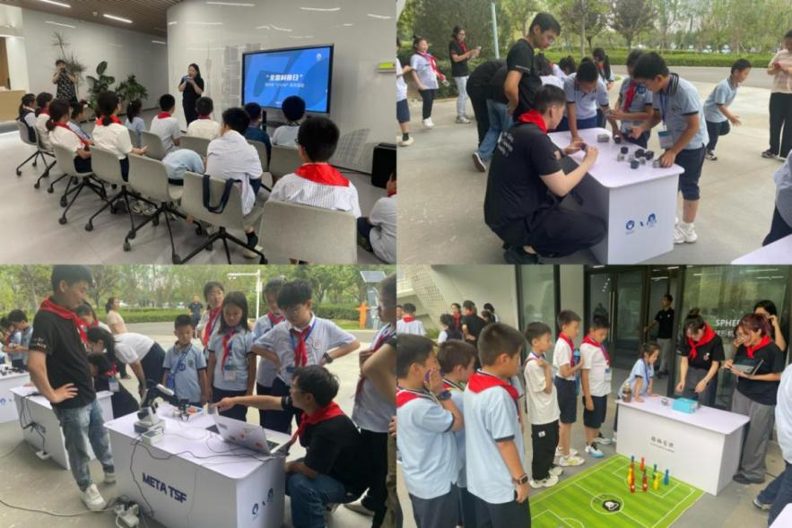 在托特科学科普活动中心,学生们在科学老师的指导下,分组参与了科普趣味问答,进行了科学实验探索,体验了球形机器人、Mbot小车、水果机器人等尖端科技产品。