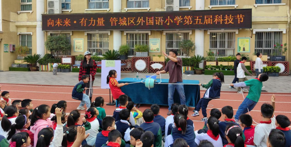 10月15日,气象主题校园科技节在郑州市管城回族区外国语小学举办,全校2000余名师生参加活动。